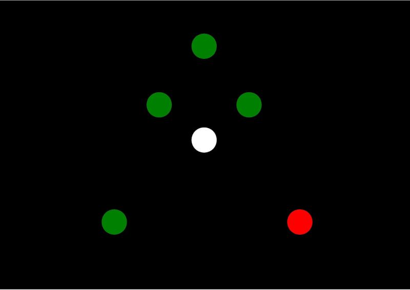 Sie erkennen bei Nacht folgende Lichter. Um welches Fahrzeug handelt es sich und wie verhalten Sie sich?