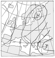 Welche Wetterlage erwarten Sie aufgrund dieser (vereinfachten) Wetterkarte in der Ägäis?